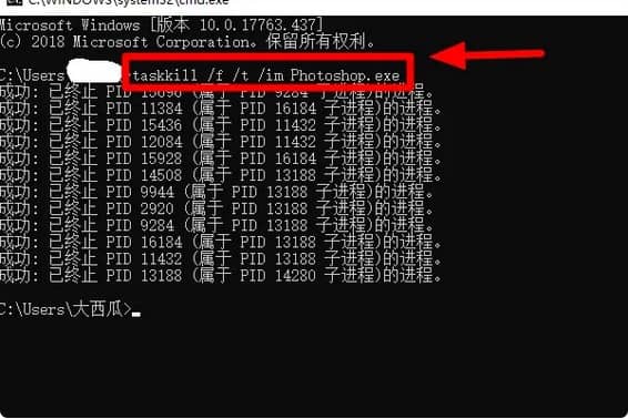 可以用“taskkill /f /t /im”命令关闭应用程序。