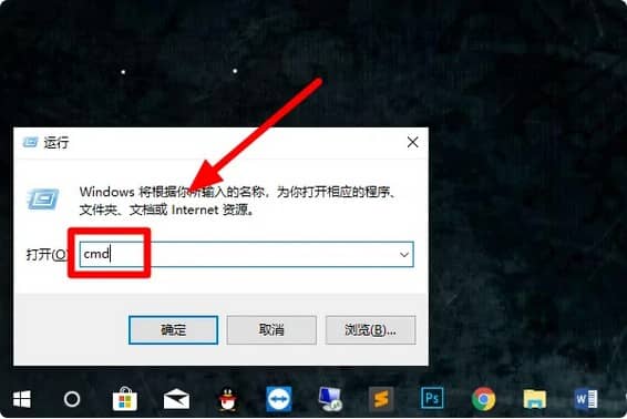 1、同时按住键盘上“win”键 +“R”键打开运行窗口,在运行窗口中输入“cmd”并按回车键打开 cmd 窗口: