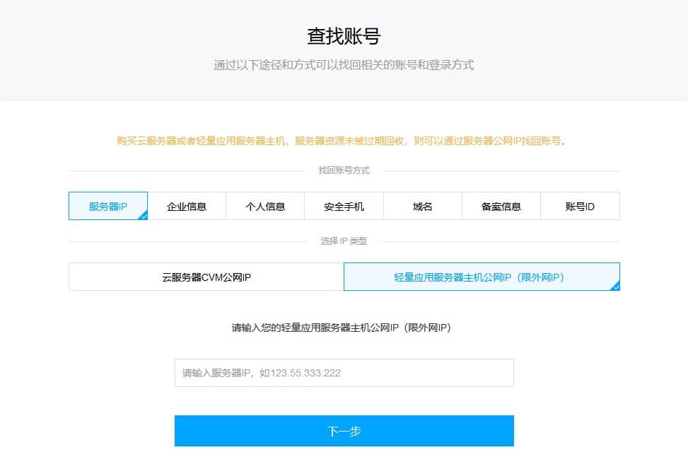 【腾讯云】若您忘记腾讯云账号或所属业务账号,可通过:https://mc.tencent.com/U7MHhh4O 填写相关信息找回账号。