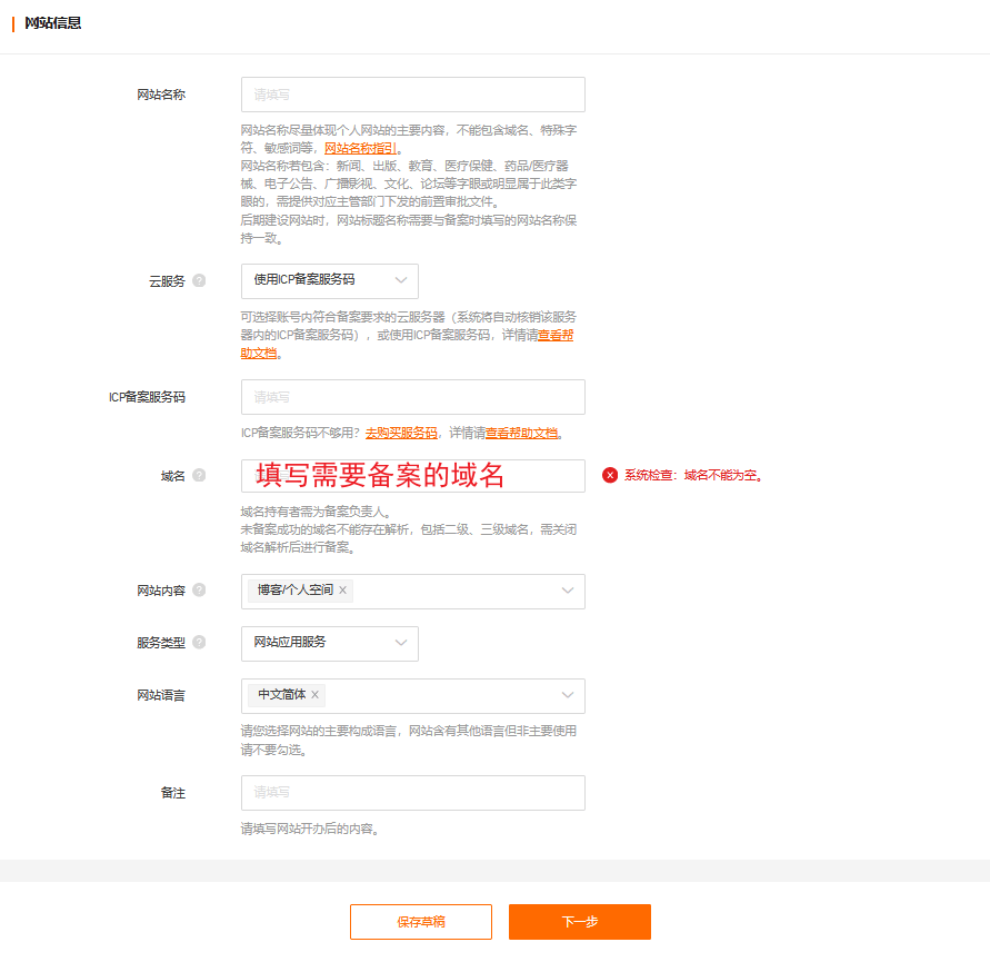 注意:如果是新注册的域名且,则需在域名购买 3 天后方可申请域名备案(据说是因为域名信息需要同步到工信部那边)