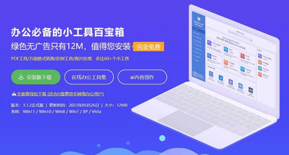 良心作品万彩办公大师 OfficeBox,绿色无广告,安装包仅需 12M,工具箱里面的小功能使用时可随时下载。