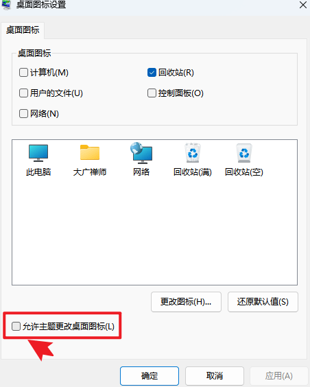 1、“设置”→“个性化”→“主题”→“桌面图标设置”→取消勾选“允许主题更改桌面图标”